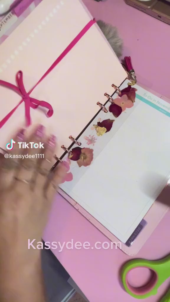 This is beautifully Infused with pressed flowers and a little gold foil. I made mine for my planner, the pink elastic makes it so you can use it with any size planner, 8.5x11, A7, A6 etc.
